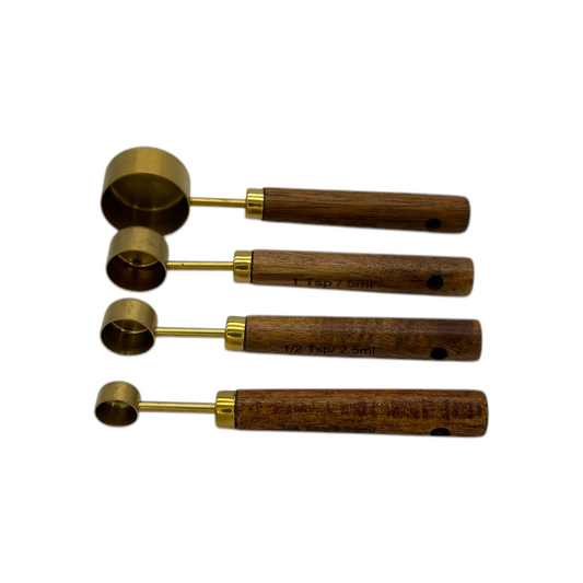 Juego 4pz Cucharas Medidoras Doradas Mango Madera