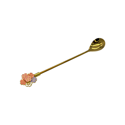 Cuchara Dorada Flor Rosa/Morado 19cm