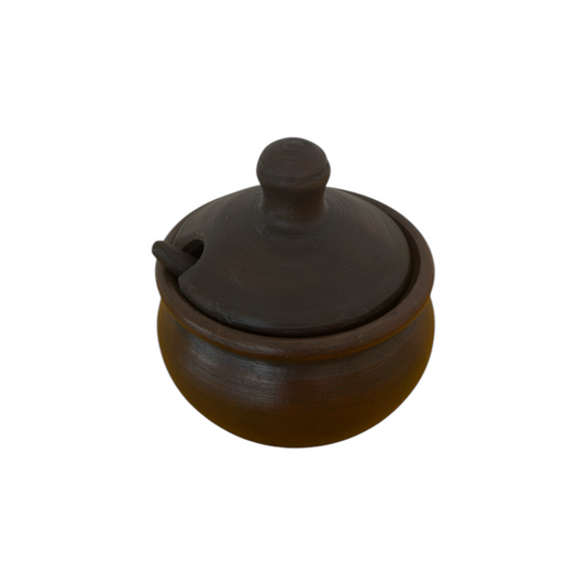 Recipiente Greda Chilena 7.5cm X 5cm C/Cuchara C/Tapa