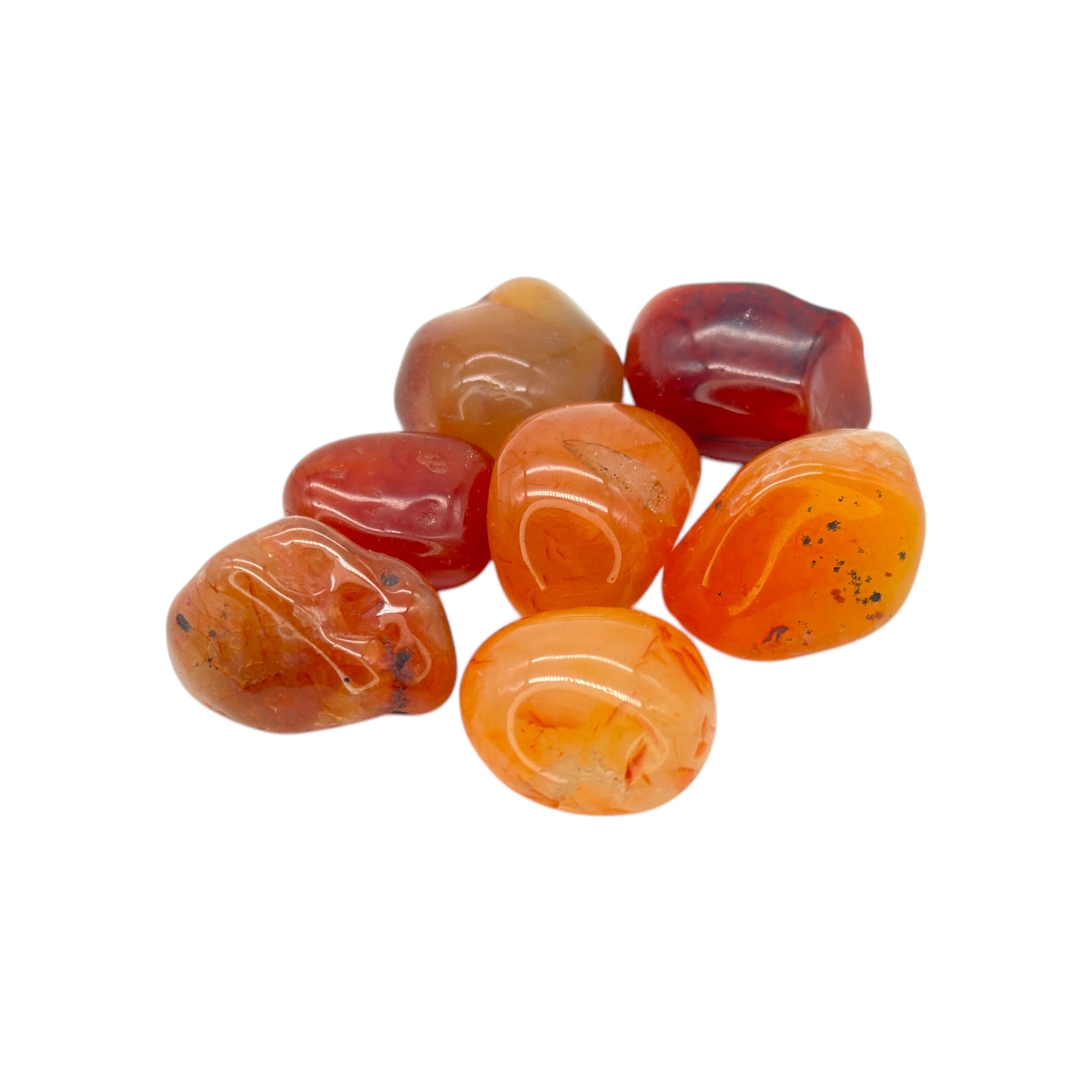 La **Ágata Cornalina Rolada** es una piedra de intensos tonos anaranjados y rojizos, cuidadosamente pulida para obtener una superficie suave que resalta su color y energía vibrante. Con dimensiones de entre 2 y 3 cm, esta cornalina es ideal para quienes buscan una fuente de vitalidad y motivación. Perfecta para usar como amuleto, en joyería, o en prácticas de meditación, la cornalina es una piedra conocida por su capacidad de fortalecer el espíritu y promover la creatividad.